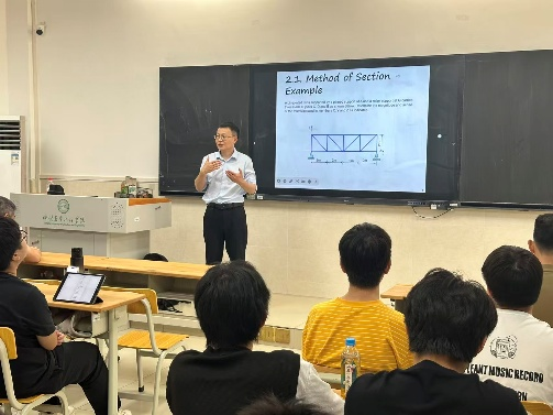 张教授以英国经典建筑“福斯桥”(Forth Bridge)为案例,结合结构力学基础内容“pin-jointed frames”,深入解析桥梁结构内部原理,并全程采用全英教学,让员工体验国际化授课模式。