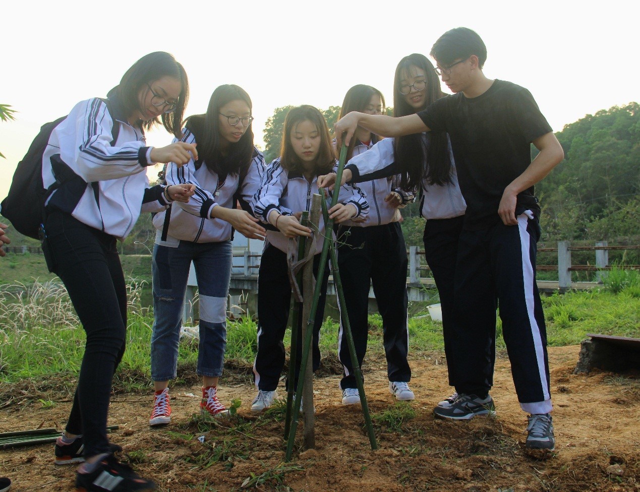 春风送暖,万物勃发。下午5时许,韦书记和龚老师来到活动现场,刚开始,活动现场一派热火朝天的劳动景象,大家热情高涨、干劲十足,在韦松林书记和龚妃良老师的带领下,一起挥锹培土、填入树苗、夯实土壤……在此其间,韦松林书记一边询问同学们学习生活和体育锻炼情况,叮嘱他们热爱劳动,培养爱护环境、爱绿植绿护绿的意识。另一方面还教授大家许多植树的常识经验,令大家掌握了科学植树的方法。