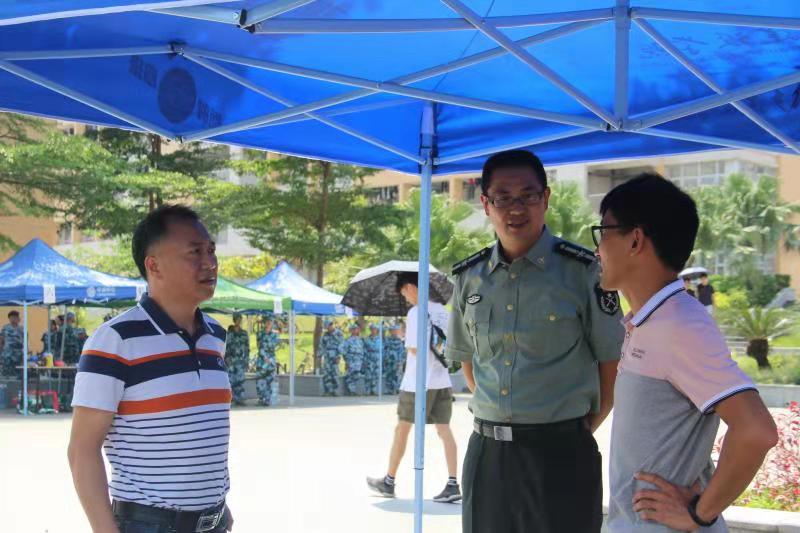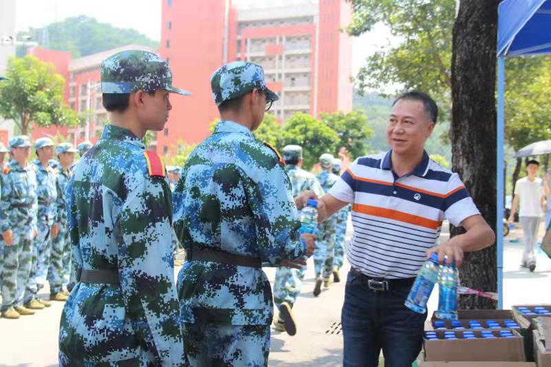 同时,书记还给每位辛苦训练的教官和新生们送来了清凉饮料,同学们接过韦书记亲手递过来的饮料,相信这一定鼓励能让他们在军训的最后几天里更加认真对待,全力以赴。