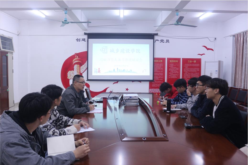 土木173陈宁同学提出应以个人复习为开端,进入考研状态,要有耐性,克服枯燥和孤独,另外要使成立的考研群成为一个加油平台,消除压迫感,多交流方法。给排171李文锋同学点出考研竞争力大,要学会自律和保持一个健康的身体,有计划有目标去要求自己,并在群上实现资源共享化。城规171黄芃皓同学提出要保持该专业考研的好势头,邀请成功考研的师兄师姐加入群中激励和答疑。土木182姚明辉同学分享自己的看法,做好主干路建设,即好好学习专业知识、细化考研规划,做美分岔路建设,多参与竞赛和学术研究。给排181张尧表示要在现实中和规划中做好自己,分阶段分目标去执行。城规182冯泽政同学表示要做好老员工该做的事,读好书,确立考研方向。