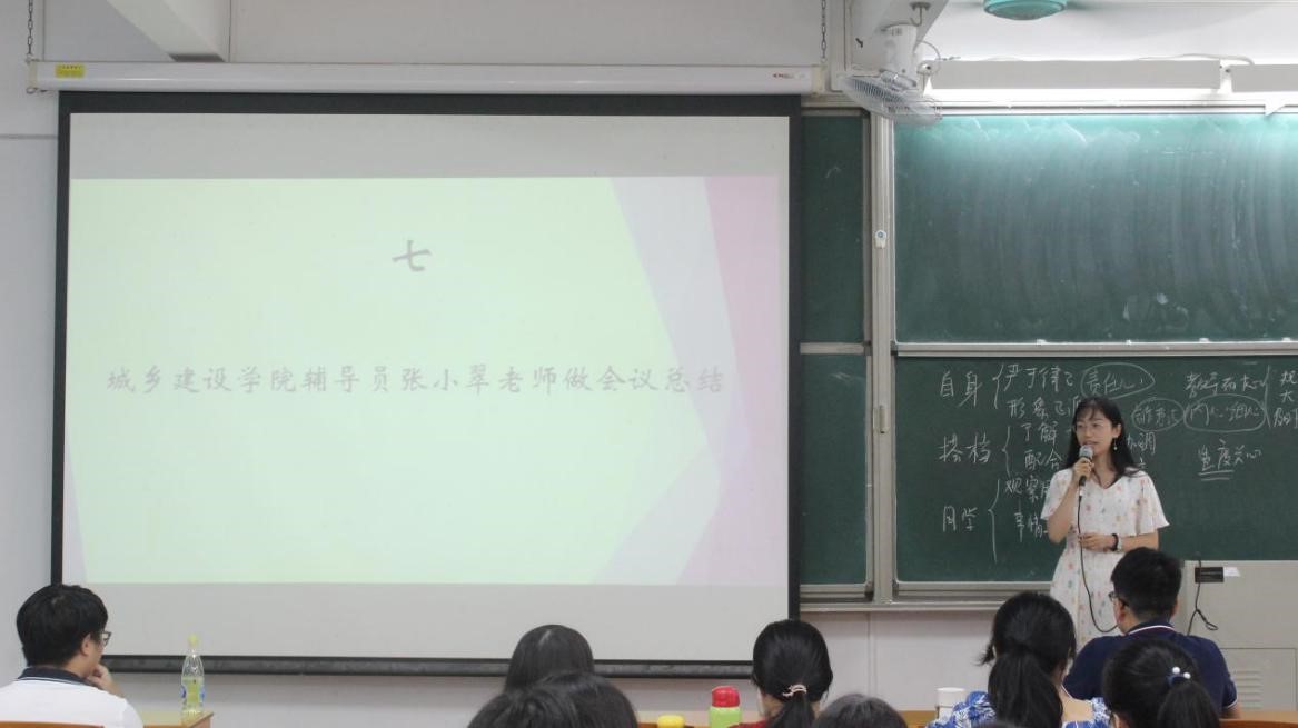 最后,张小翠老师做会议总结,她充分肯定了上一届助班的工作,并且希望新一届的助班要向他们看齐,互相协作,引领新生开启崭新的老员工活。张老师也提出了三点要求:一是助班一定要严格要求自己,在思想、学业、生活等各方面为新生树立标杆;二是多关注新生的内心世界和心理健康,用心工作用情感化;三是提醒新生助班要牢记当助班的初心,始终保持对这份工作的热情和激情,同时平衡好学业与工作。