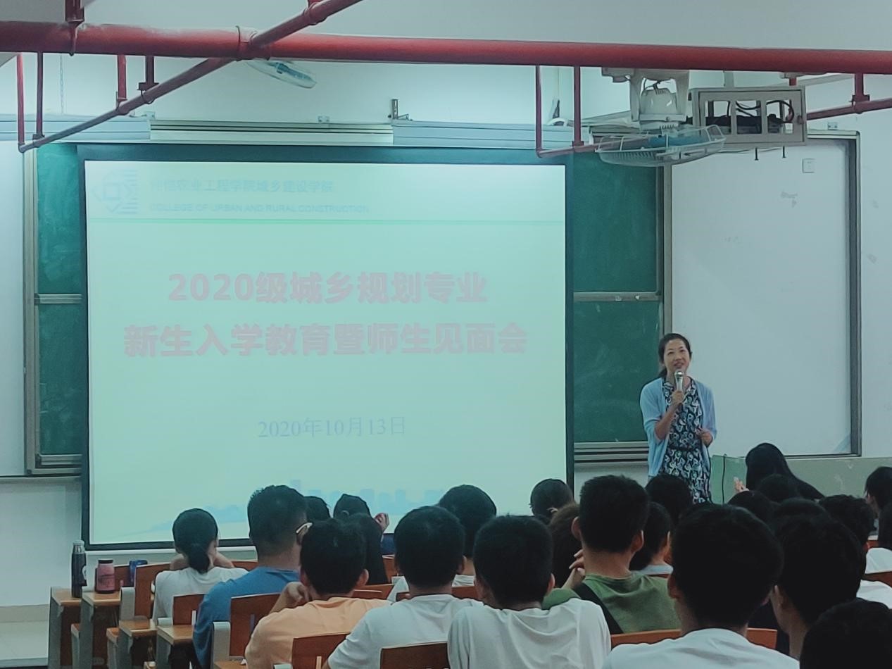 接着,城乡规划专业教研室主任魏毓洁老师、土木工程专业教研室主任程晔老师、给排水专业教研室主任林冲老师,分别为新生细致地讲解了各专业的发展历史和人才培养方案,为同学们今后的学业规划和个人发展提供了很好的建议。城乡规划专业温莉老师为同学们上了“开学第一课”。其他参会专业老师们也纷纷依次登台与同学们进行了简短的见面会。