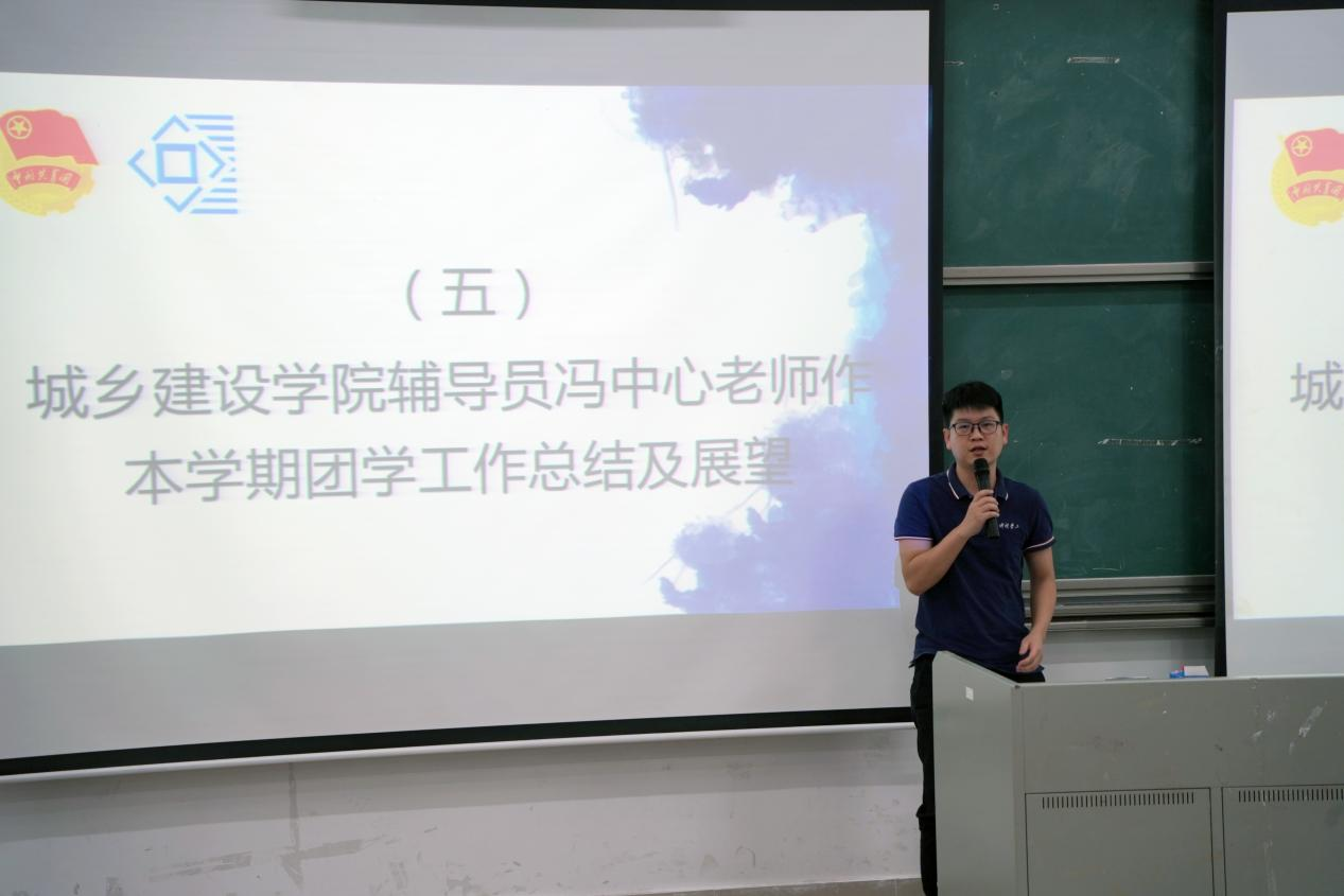 会议最后,由冯中心老师作本学期团学工作总结及展望。他肯定了员工干部们的辛勤付出,为同学们提出三点建议。一是在反思总结的基础上悉心策划,主动与老师交流工作,注重面谈以提高问题沟通的效率;二是要求老成员挖掘考察下一届人员,着重培养新一届成员统筹能力;三是建议助理们发散思维,主动与部长们协作,积极地为团学工作出谋献策。冯老师希望员工干部们能在新学期注重自身形象,开拓思想引领,摆正工作态度,发掘团学活动的深刻意义,明确为员工服务的工作目的,加强团队建设以提高部门凝聚力。发言结束,全体成员合影留念,并宣告这次例会圆满成功。