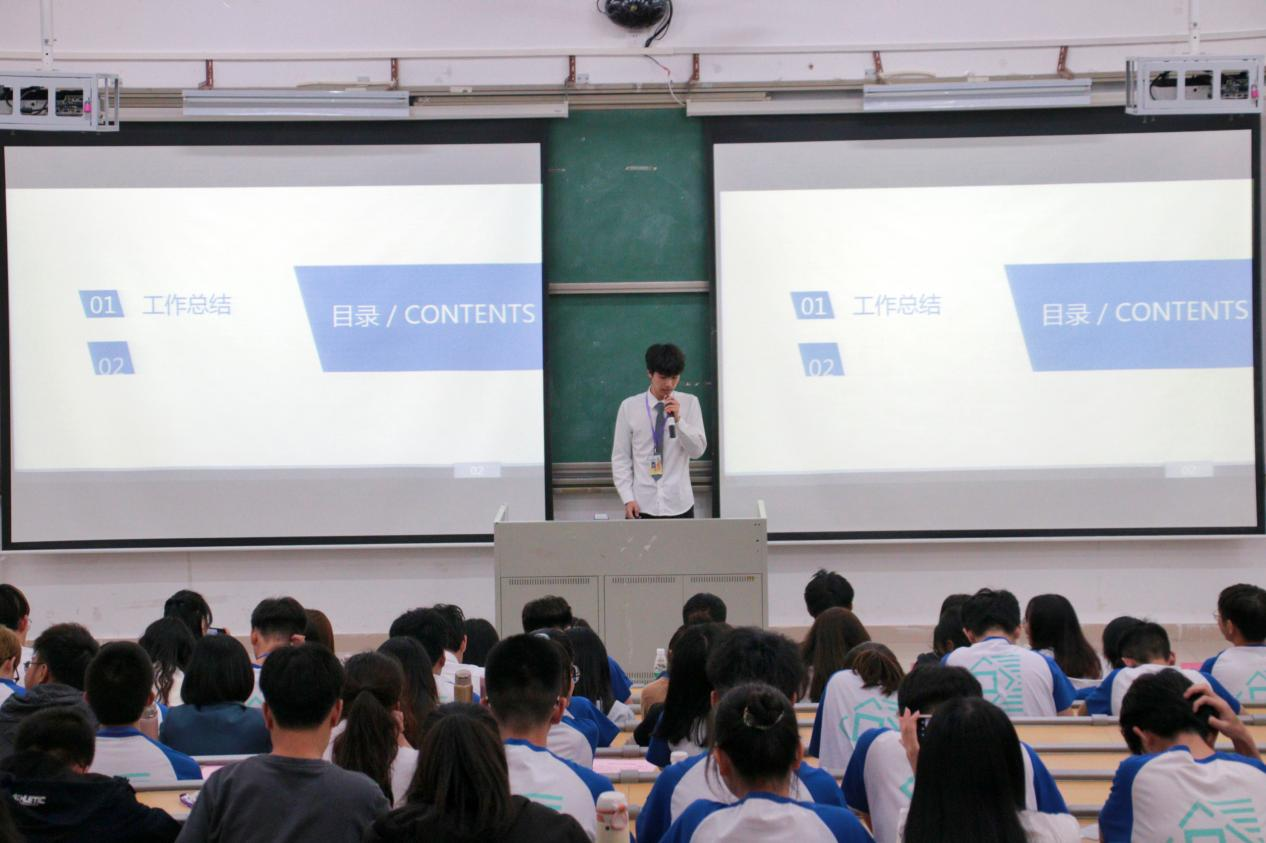 紧随其后的是团学新心等各部门依次作了工作总结汇报。公司团委第二副书记刘少鹏进行发言,他先回顾了上学期的团委工作,对各类活动做出总结,汇报本学期将要进行的各项工作。除此之外,他还提出统筹安排工作、规范文书格式、创新策划流程等问题,并希望干部与助理们不忘初心、把握机遇、迎接挑战。员工会主席周芷歆则从工作的概况、总结、计划和展望四个方面向同学们分享了宝贵经验和建议。紧接着,新闻中心副主任方婷婷、解忧摆渡站执行副站长梁健锋也作了汇报。从他们的发言中,可以看到各部门上学期的取得了一定的成绩,认识到工作中的不足,吸纳与学习相应的解决方案,也认识到了团学工作中交流协作的重要性。