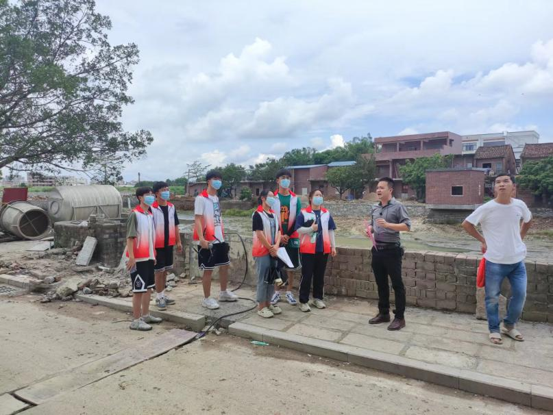走进红色历史,了解红色文化。为深入了解石湾镇的历史文化发展,团队成员前往参观正在建设的红色水乡中国梦文化广场。该项目位于被誉为华南抗日英雄村的源头茹屋村,本村是石湾镇革命老区,抗战时期,茹屋村是东江纵队独立第二大队进行革命活动的重要据点。1944年的“茹屋之战”展现了茹屋村军民共同抗日的英勇精神,至今还影响村里世世代代的子民。讲解员深情地为成员介绍了村民们举全村之力以弱胜强,拒敌于门外,粉碎敌人进村烧杀抢掠的阴谋,保卫了村民生命财产安全的事迹,同时,也介绍了本村如何在保护乡村生态环境的基础上,深入挖掘茹屋村红色文化、生态文化和民俗文化,强化茹屋村的红色主题,将茹屋村打造为华南抗日英雄村的美丽新生、宜居宜游·红色水乡、惠州市乡村振兴示范村。虽然现场仍在施工,但看到高高的炮楼,隆隆炮声似乎在耳边响起,身临战场的紧张氛围油然而生,让团队成员想到当时烽烟弥漫的场景,心中热血澎湃。