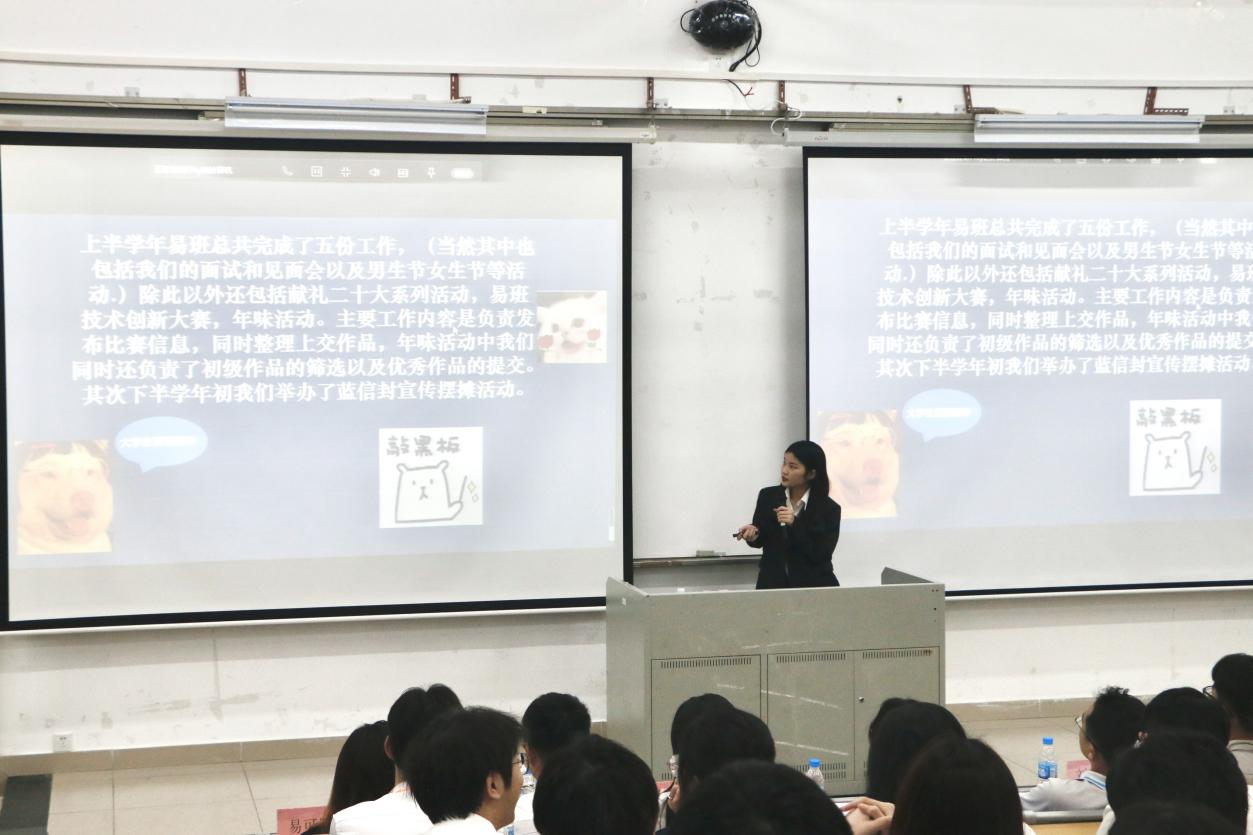 团委各部门代表、员工会各部门代表、新闻中心各部门代表和解忧摆渡站代表依次上台发言。他们就各部门分工情况与工作特点进行简要介绍,分别总结了上学期的工作成果,指明仍需改进的不足,向大家展示新学期的工作规划,同时还分享了部门成员的日常趣事,展现了各部门的成长与收获。
