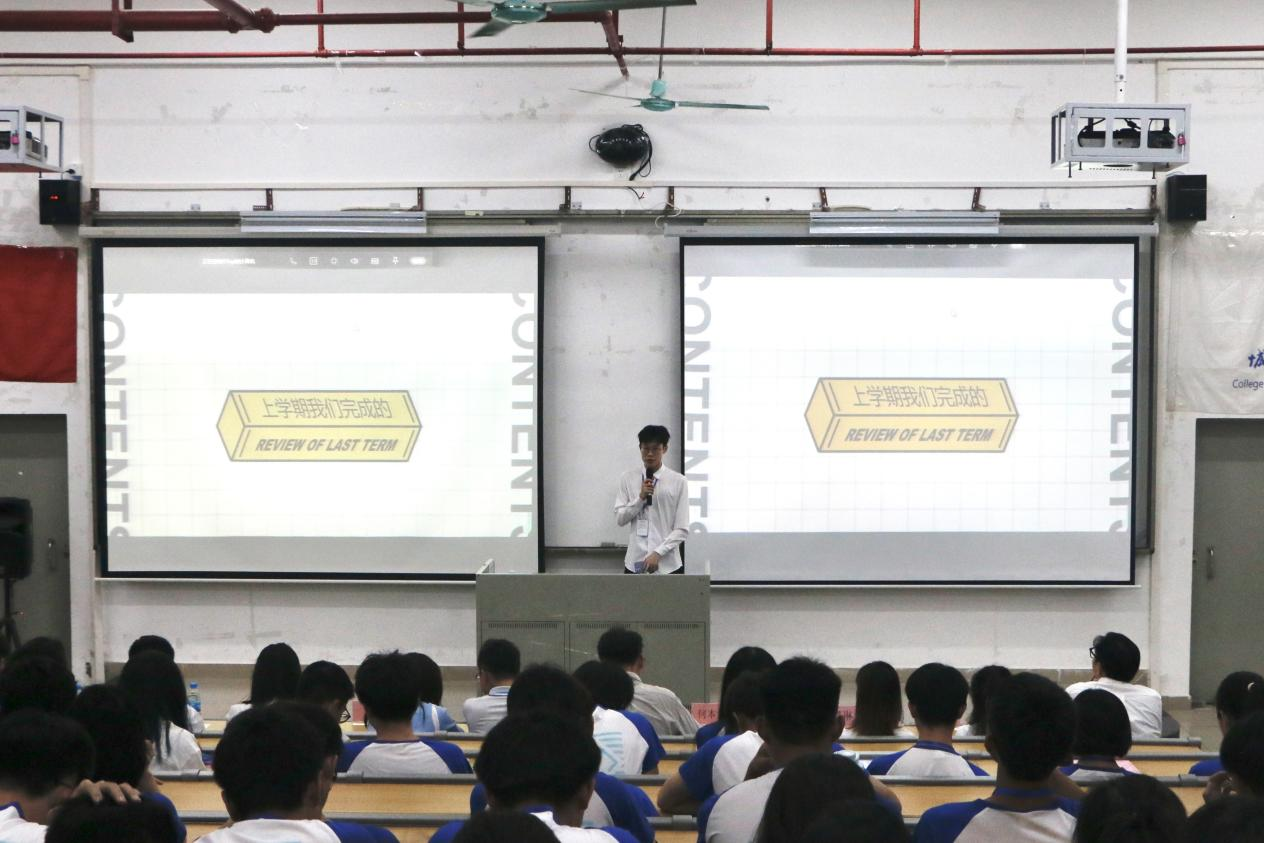 会议伊始,全体肃立,奏唱团歌。刘楚涛老师上台致辞,首先感谢同学们在上一学期的辛勤付出,明确此次例会的重要性,希望同学们利用好公司给予的锻炼平台,认真做好每一项工作,“吃亏”的经历可以锻炼自己的品性,斤斤计较则无法获得成长。希望同学们将创新精神运用在自己的工作上总结过去的经验,各部门相互借鉴创新总结。