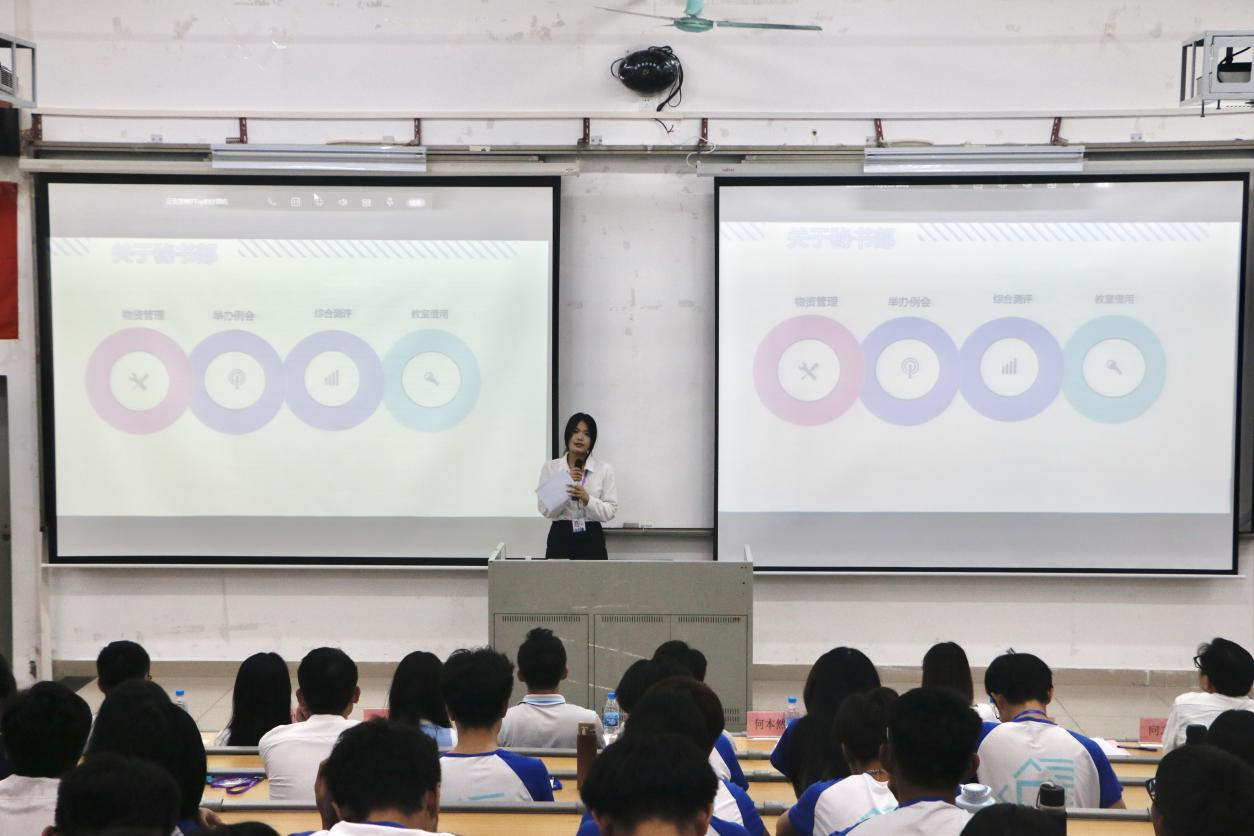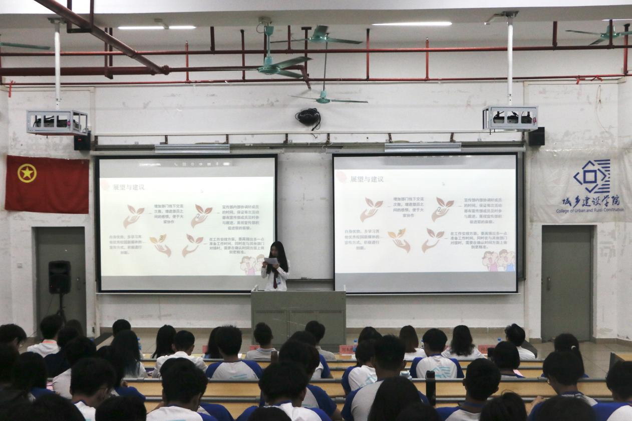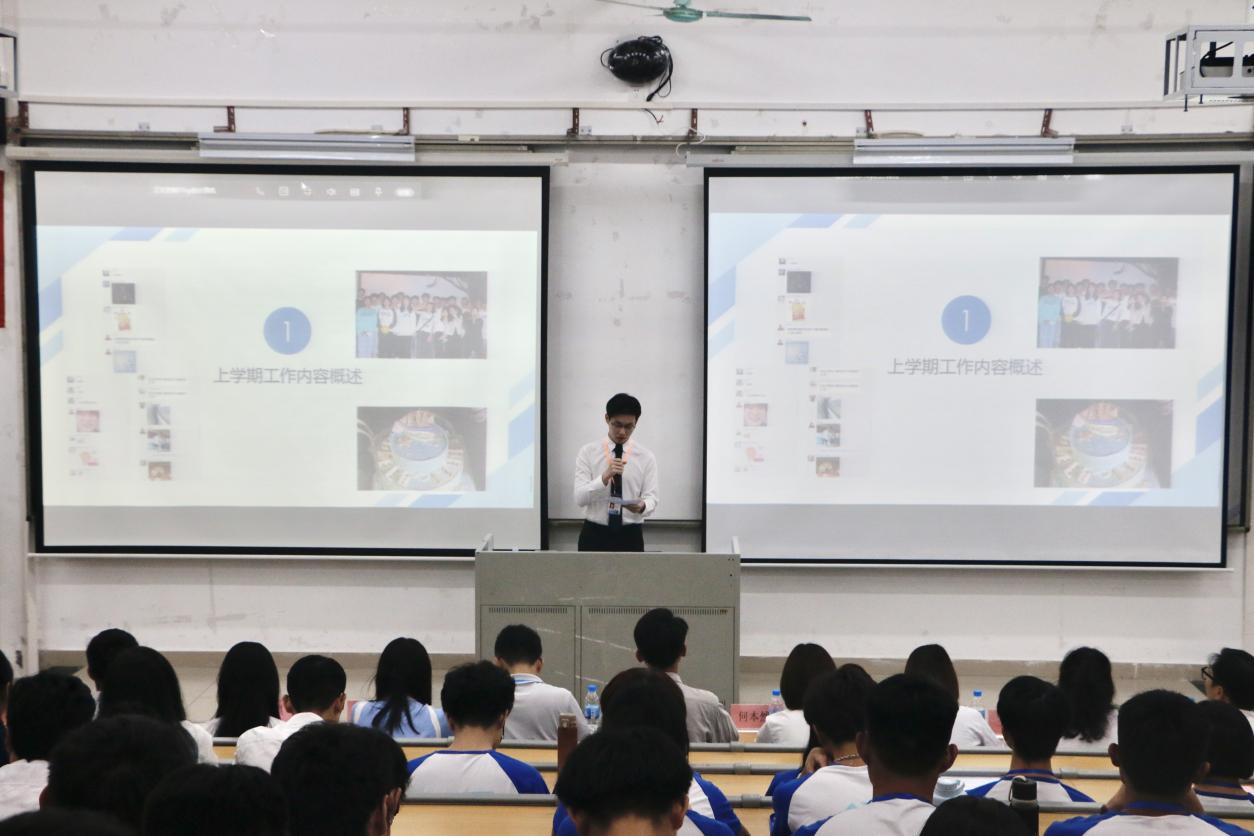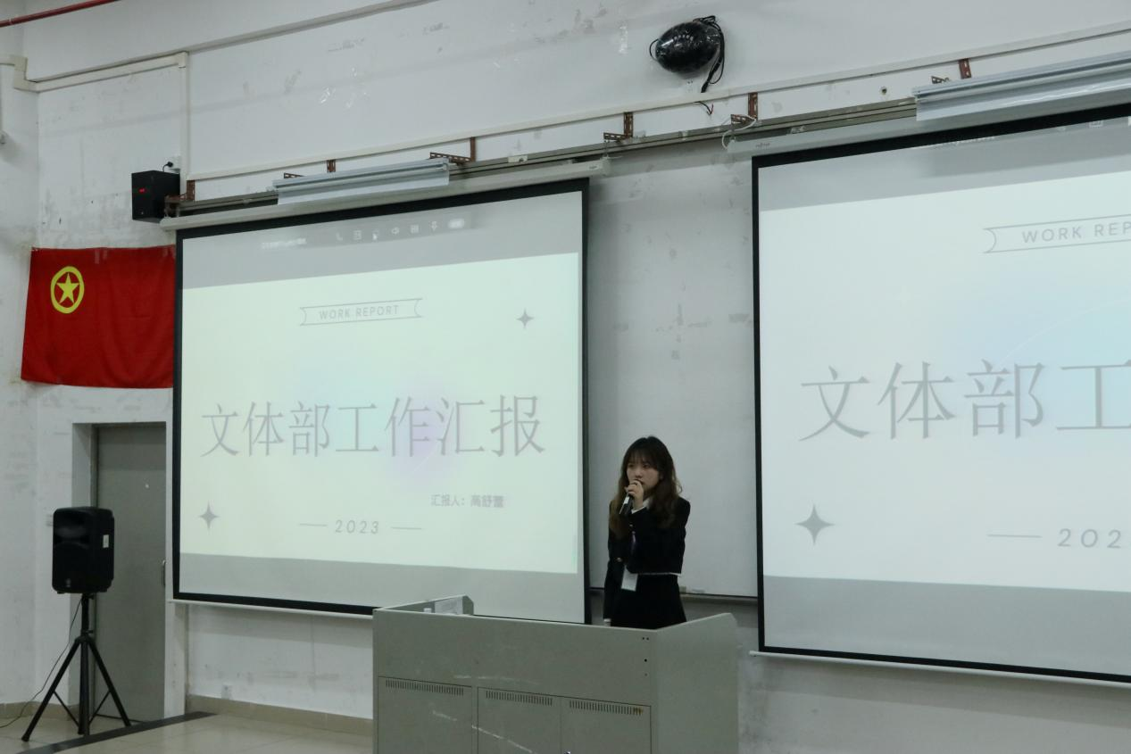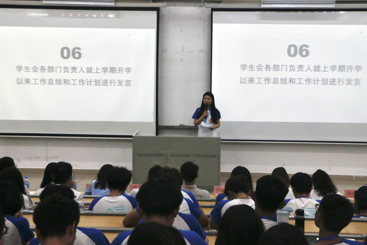 团学新心等各部门依次作工作总结汇报。团委员工副书记何本然进行发言,回顾了上学期团委工作,对各类活动做出总结,汇报本学期将要进行的各项工作。除此之外,她还指出团学内部所存在的问题,并希望各位部长做好带头作用,并提出改进方法与工作展望。员工会主席团成员曾慧琳则从工作的概况、总结、计划和展望四个方面向同学们分享了宝贵经验和建议。紧接着,新闻中心主任王沐欣、解忧摆渡站执行副站长金言舜也进行汇报。从他们的发言中,可以看到各部门上学期的取得了一定的成绩,认识到工作中的不足,吸纳与学习相应的解决方案,加强沟通协作,努力提升部门的能力。