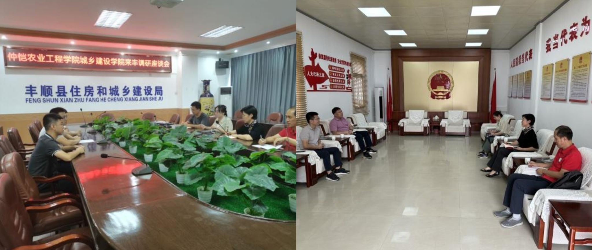 调研小组先后前往丰顺县住房和城乡建设局、丰顺县农业农村局,与相关负责人进行了座谈交流。住建局村镇建设股郑元皓股长解读了丰顺县农房风貌管控和乡村风貌提升相关工作相关政策文件,介绍了农村风貌管控的机制和落实等情况。农业农村局杜炫股长介绍了风貌提升示范带的相关情况,提到了工作落实中的瓶颈问题。参会双方畅所欲言、充分交流,共同讨论分析存在的问题和解决途径,气氛十分融洽。